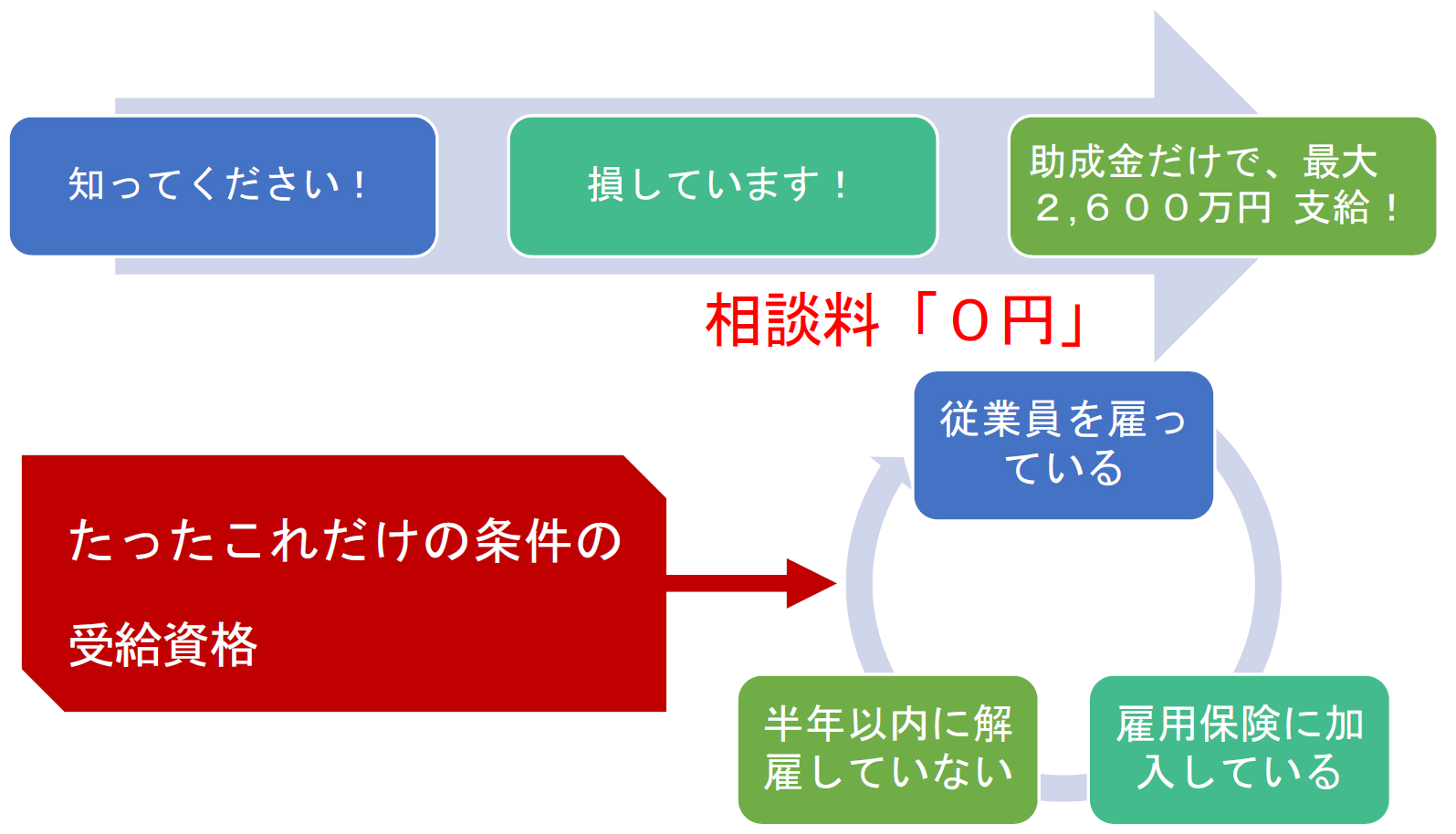 国が支援してくれる助成金を受給されていない今の貴社は、損しかしておりません。