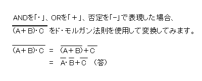 この法則を知っていると論理演算を簡潔に表現することが可能です。是非、覚えておいて下さい。