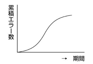 機能性…どれだけの要求がソフトウェアにより実現されたかを示す特性。 ●品質評価の手法 「レビュー」 システム開発の各工程において実施するミーティング形式の評価活動。 「成長曲線」 エラーの出現頻度にはあるパターンがあることが知られています。横軸を時間(期間)、縦軸をエラーの累積数とすると「S字のグラフ」となります。これを「成長曲線」と言います。