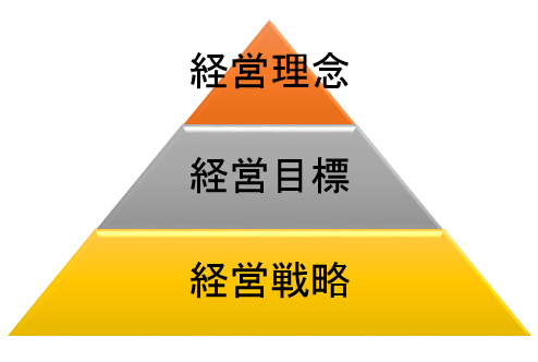 経営戦略とは、「経営理念に基づいて、経営目標を達成するための方策」のことです。色々な方策がありますのて、用語をしっかりと理解しましょう。